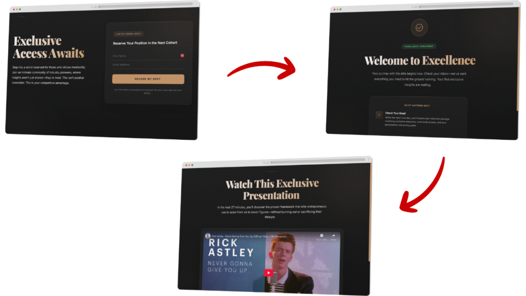 Elite Premium Thank You Page I'm particularly fond of this one! The thank you page features eye-catching animations and a polished design that keeps visitors engaged after they opt in. It's the perfect complement to the opt-in page, creating a seamless, professional experience.