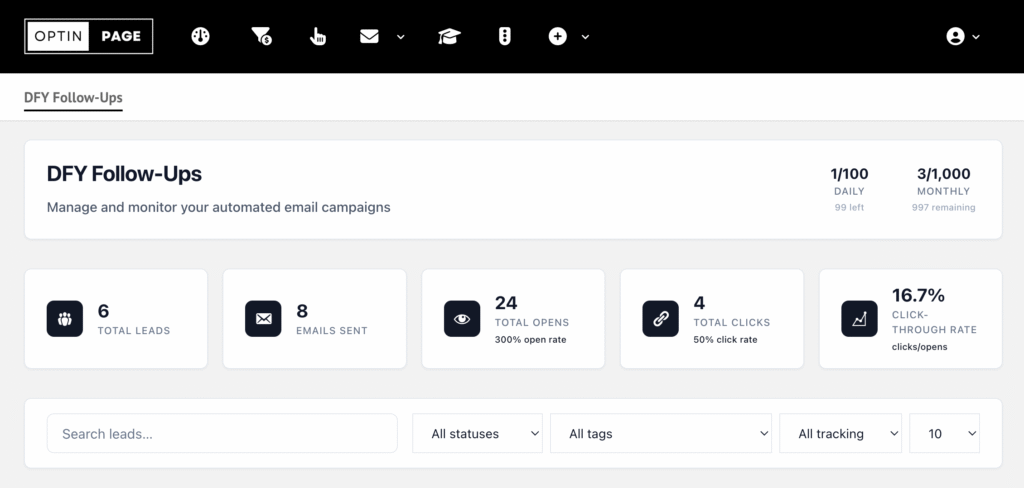 We'll continue expanding the beta for automated follow-ups and adding more offers beyond just Live Good. The goal is to make OptinPage a complete business-in-a-box where you drive traffic, capture leads, and the system does the follow-up for you.